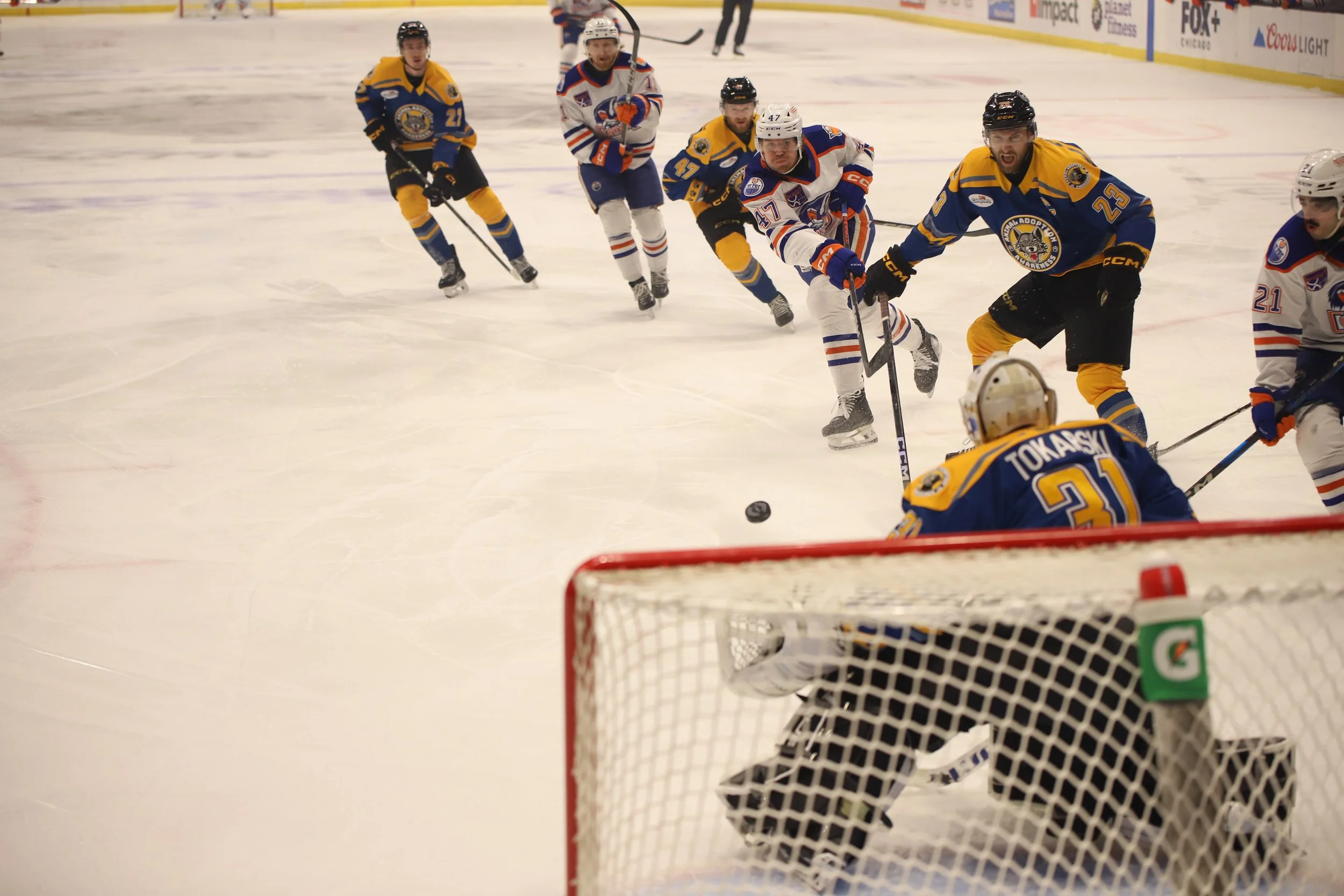 Ronnie Attard takes a shot on goal against the Wolves on Jan. 19, 2025, at Allstate Arena. The Wolves lost 6-3.