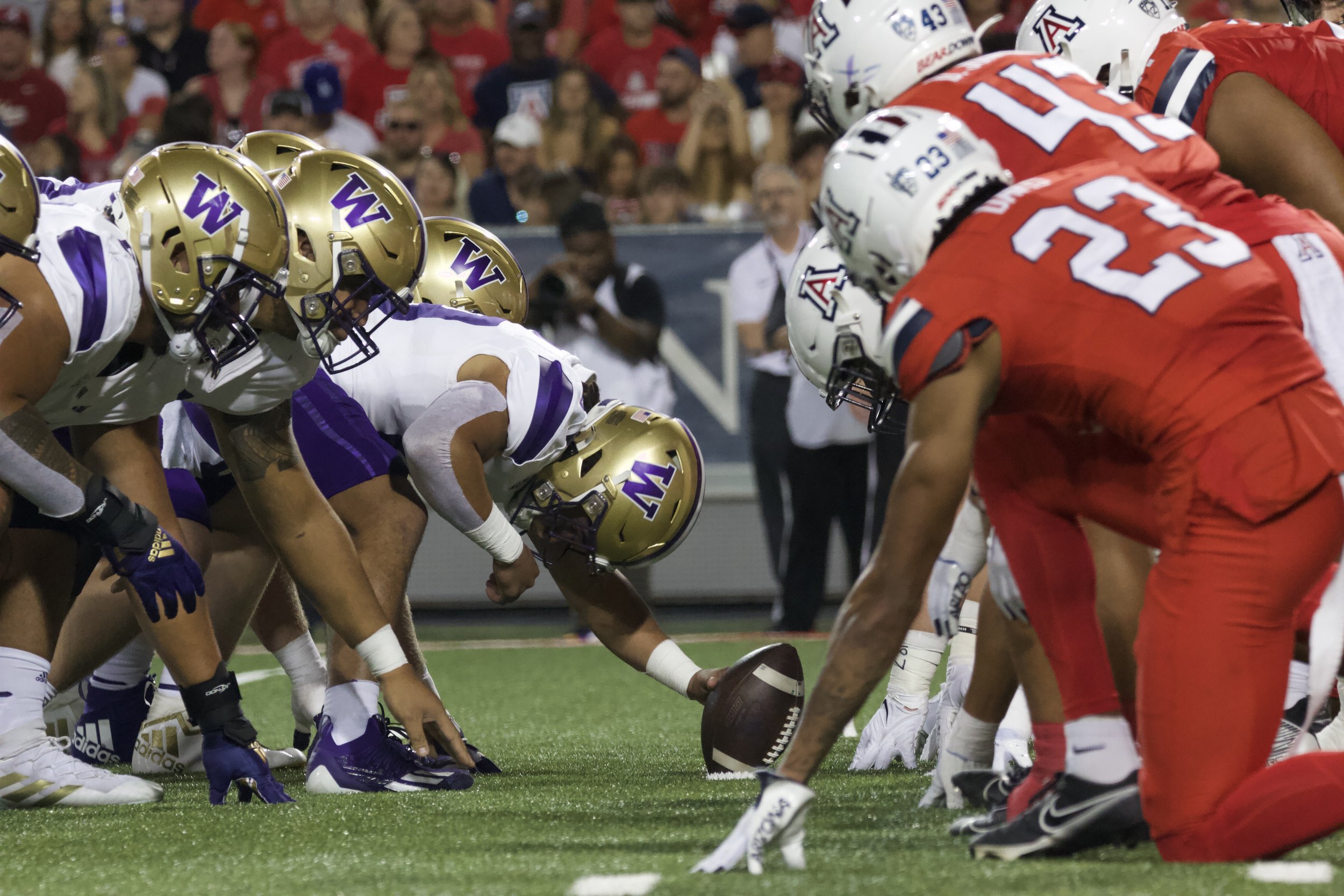 The Arizona Wildcats defense lines up against the Washington Huskies on Sept. 30, 2023, at Arizona Stadium. The Huskies beat the Wildcats 31-24.